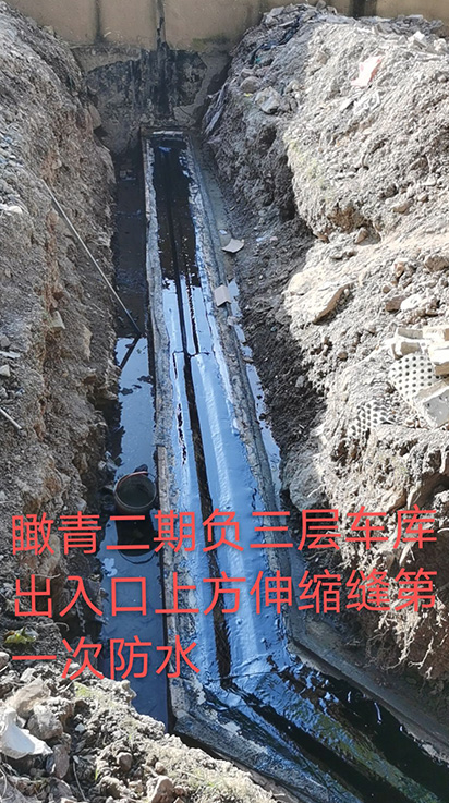 聯(lián)發(fā)瞰青第1次防水處理:聯(lián)發(fā)瞰青二期,負(fù)三樓車庫出入口上方伸縮縫防水處理